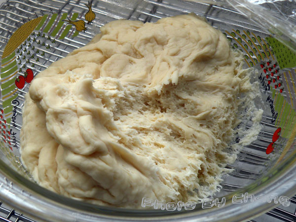終於進入正題,主麵糰用的是山茶花麵粉,攪拌至完全擴展,終溫